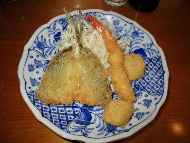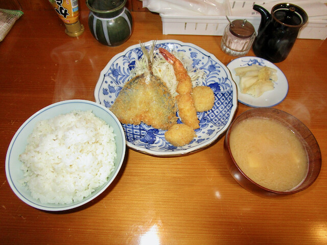 今日のランチは、浦安の『御食事処 青木』の ミックスフライ定食1000円です。