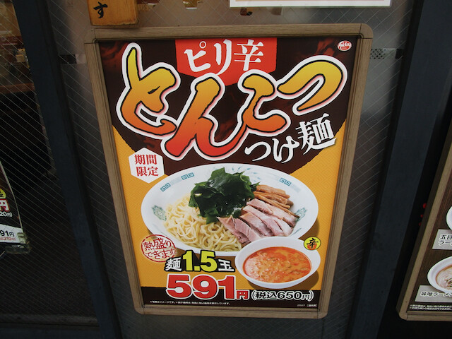 今回は、『ピリ辛とんこつつけ麺』650円と『餃子(3個)』160円
