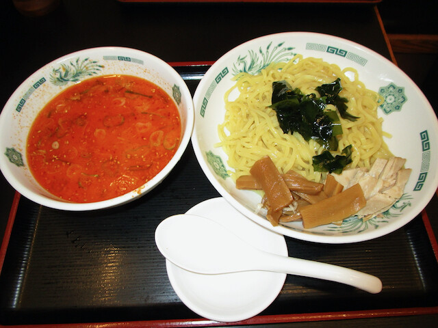 つけ汁は、ラー油が効いていて、少し辛い程度のクセのない豚骨スープ。