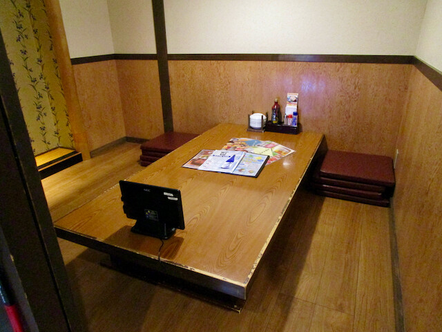 掘り炬燵式の個室。