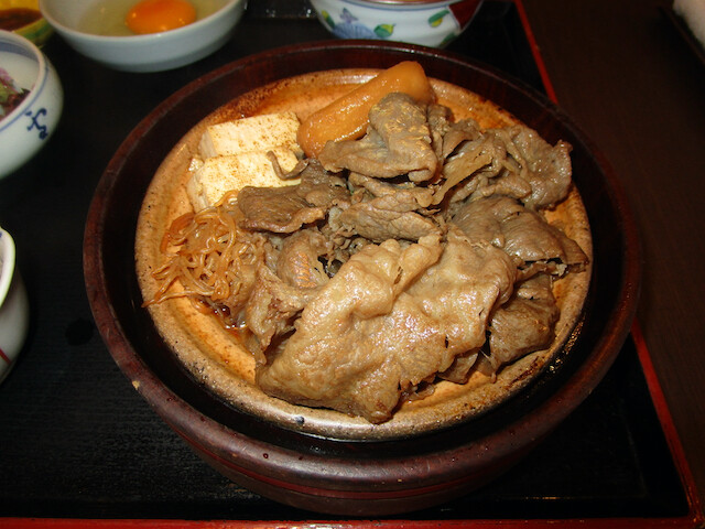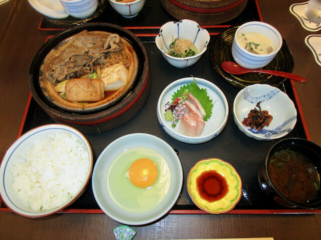 すき焼きに、お造り、小付、茶碗蒸し付き。